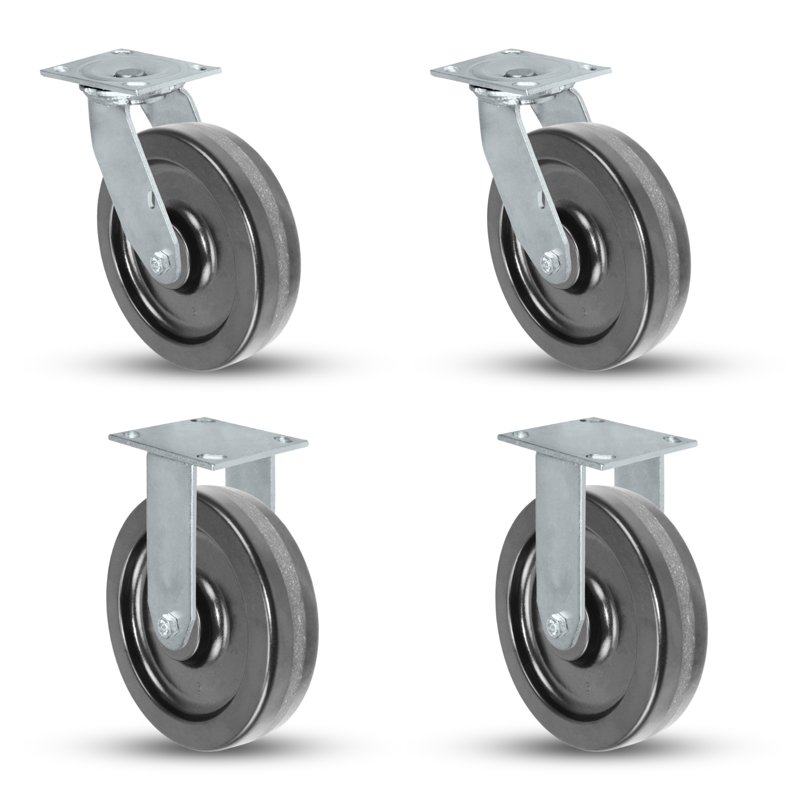 8" x 2" Phenolic Caster Set | 2 Swivel & 2 Rigid